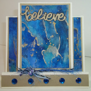 I've been having some fun with mixed media. I decided I wanted to do an underwater theme using Julie Nutting's mermaid stamp. After much thought and experimentation, here's what I came up with.