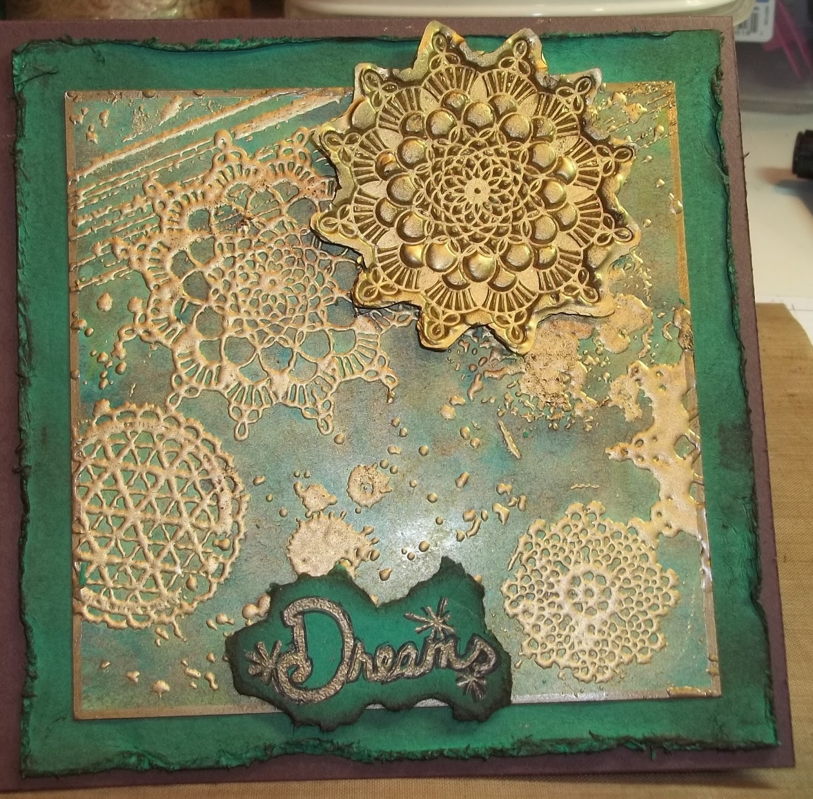 Experiment in faux metal card. I was cleaning up the mess from yesterday's workshop with my friend and decided to post the card I made while experimenting with faux metals.