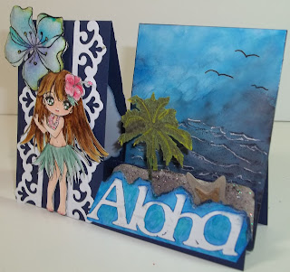 Not wanting to be wasteful when I found a watercolor flower I had done, I cut it out and decided it needed to go on a card. I rummaged through my box of bits and pieces and ended up with the following "Aloha" card.